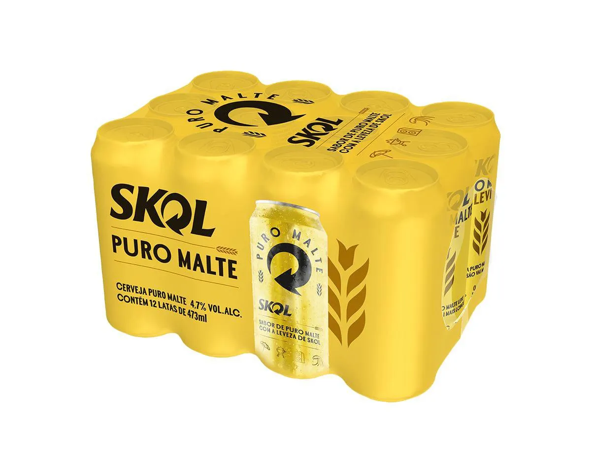 Cerveja Skol Puro Malte Lata 473ml – Fardo 12 Unidades